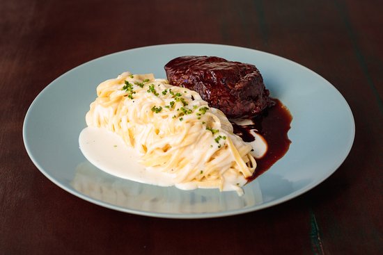 Spaghetti Alfredo com Filé Mignon